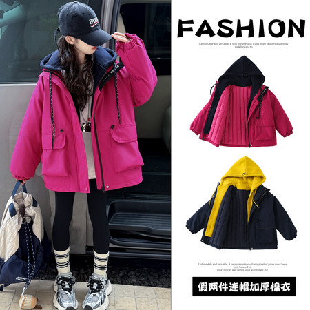 1*5收藏“2905款假两件连帽冲锋衣加厚棉衣”
